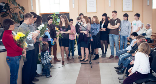 Служители совершили молитву благословения, а затем церковь и наша молодежь поздравили родителей.