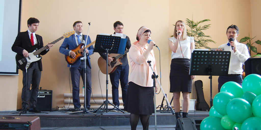 Мы славили Господа вместе с группой прославления.
