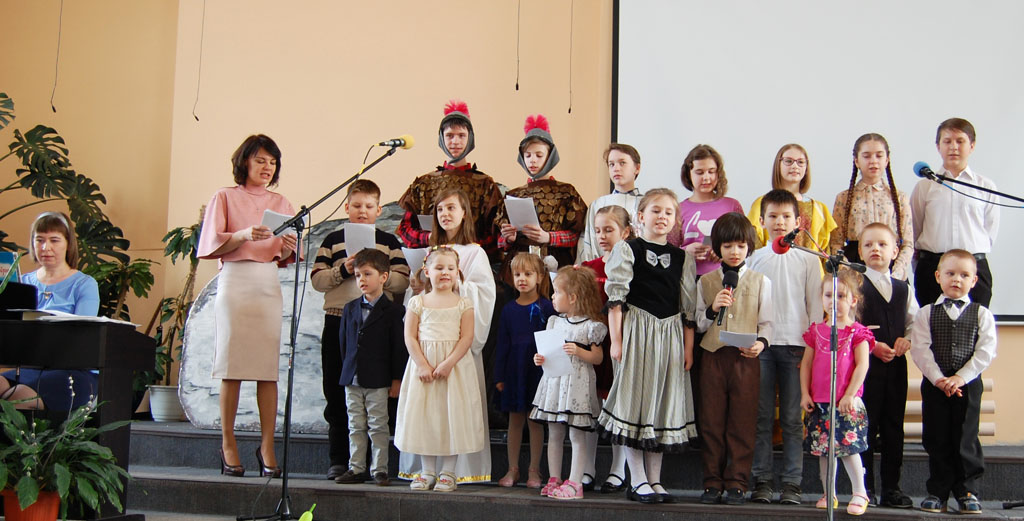 Дети из Воскресной школы показали пасхальную постановку.