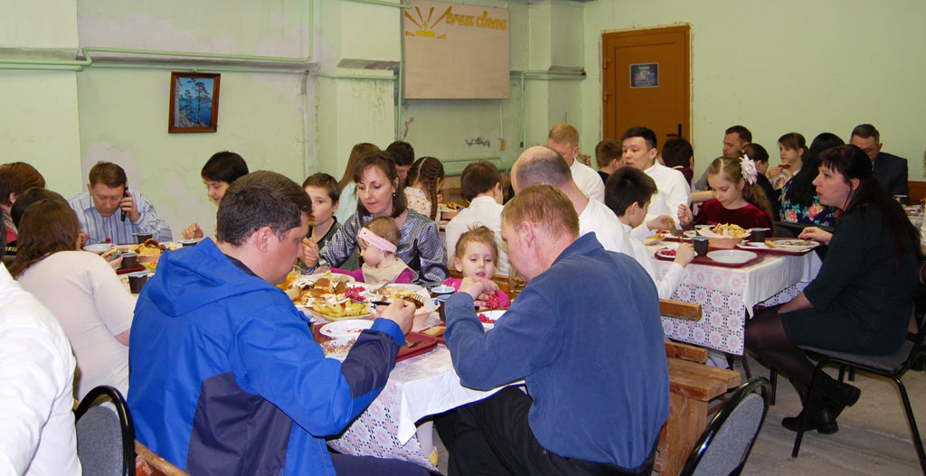 После богослужения мы продолжали общаться за праздничным столом.