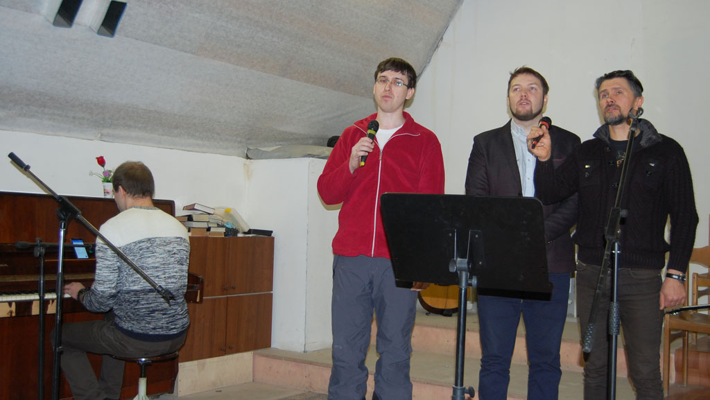Пастор церкви ЕХБ г. Ржева Михаил Витальевич Соловьев исполнил пение.