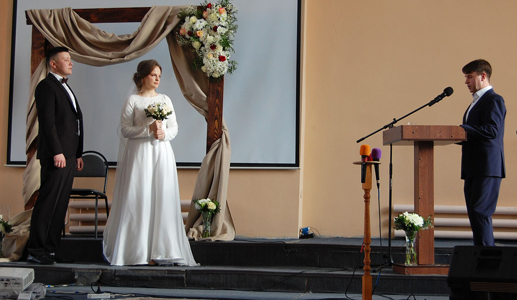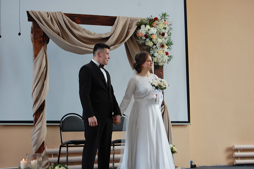 Первый пресвитер церкви Игорь Вячеславович Кудряшов, который является отцом невесты, сказал наставление для молодоженов.