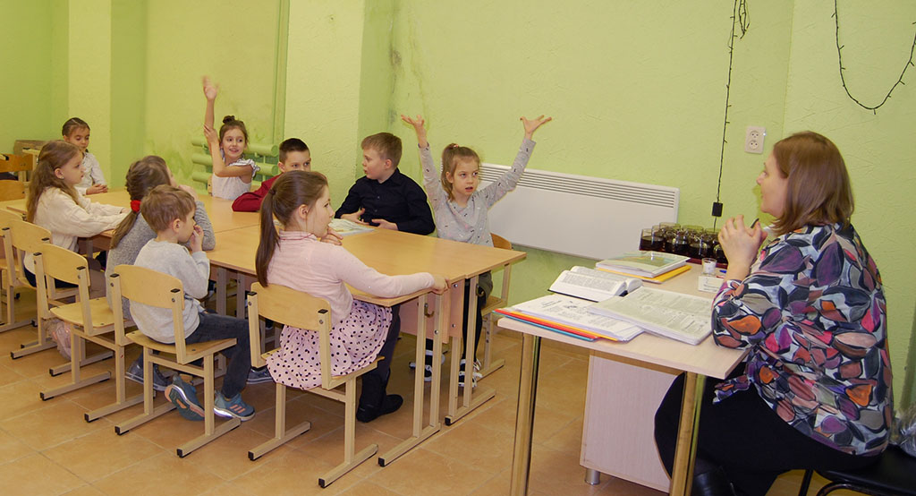 На уроках им рассказывают библейскую историю, они рисуют, поют, изготовляют поделки, участвуют в конкурсах. На праздники они рассказывают стихотворения, показывают спектакли.