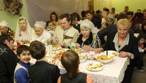 По окончании богослужения общение продолжилось в столовой, где наши сестры приготовили праздничный обед.